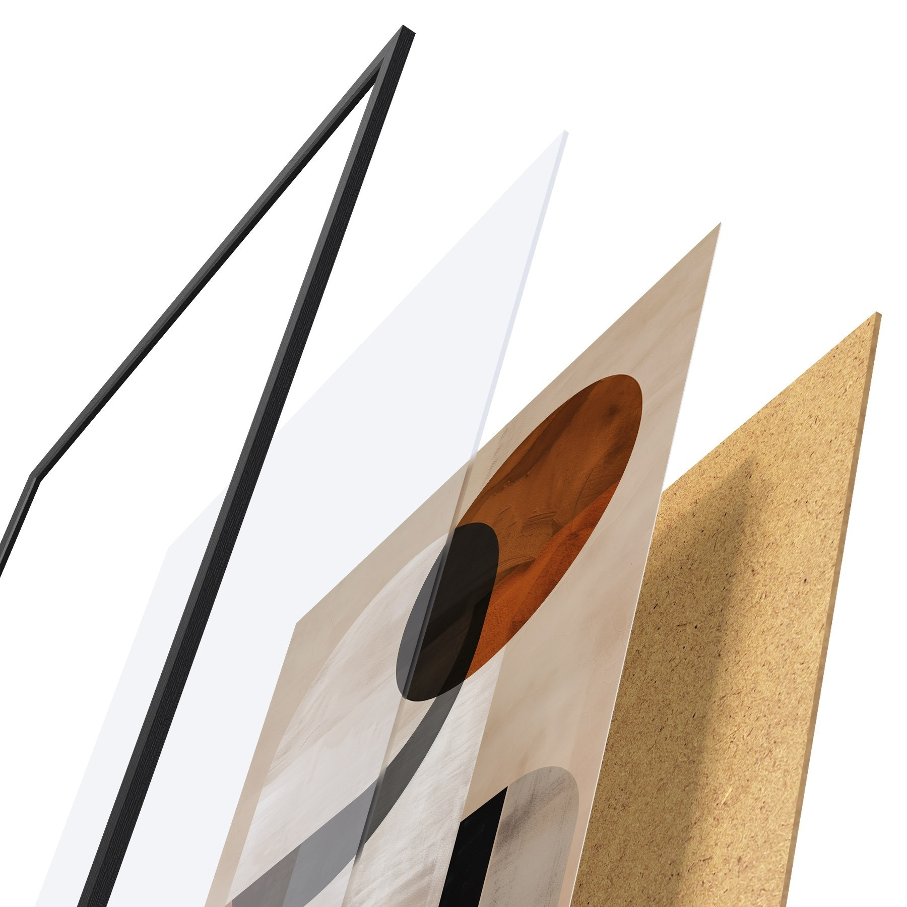Plagát sa skladá z rámu, plexiskla, vytlačeného obrazu a podkladu z drevotriesky. Plagát možno okamžite zavesiť na stenu vďaka úchytom na zadnej strane.
