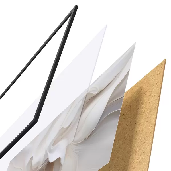 Plagát sa skladá z rámu, plexiskla, vytlačeného obrazu a podkladu z drevotriesky. Plagát možno okamžite zavesiť na stenu vďaka úchytom na zadnej strane.