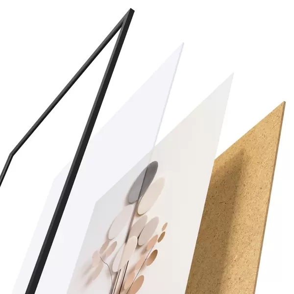 Plagát sa skladá z rámu, plexiskla, vytlačeného obrazu a podkladu z drevotriesky. Plagát možno okamžite zavesiť na stenu vďaka úchytom na zadnej strane.