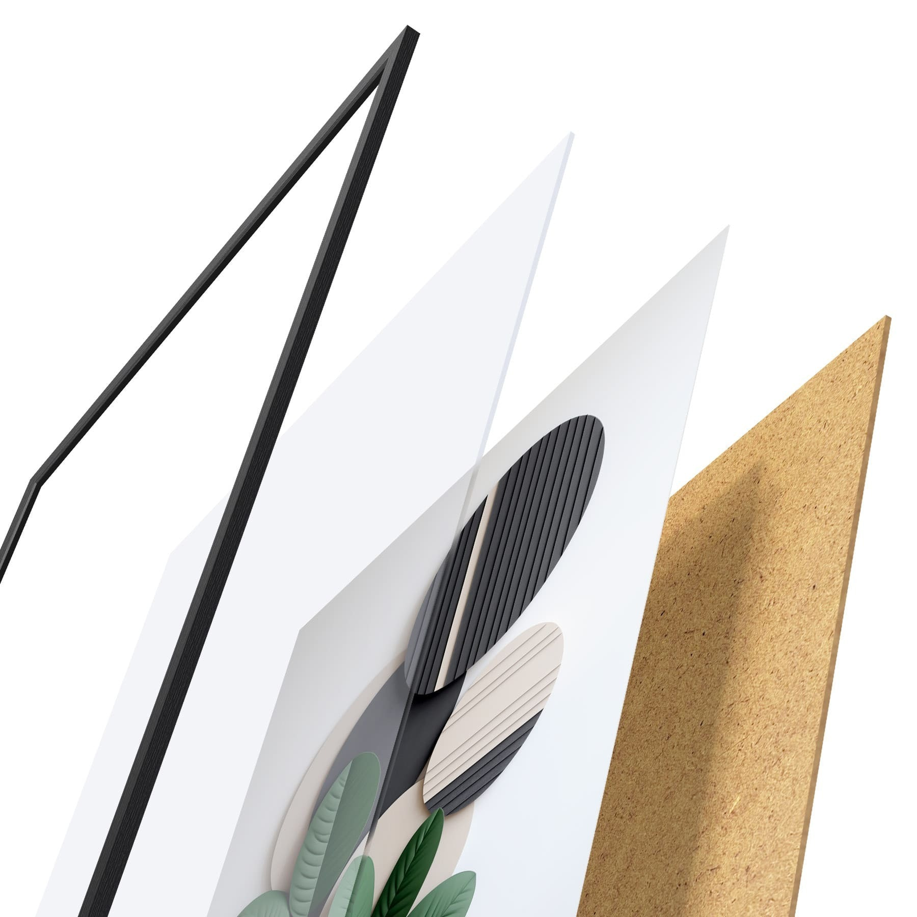 Plagát sa skladá z rámu, plexiskla, vytlačeného obrazu a podkladu z drevotriesky. Plagát možno okamžite zavesiť na stenu vďaka úchytom na zadnej strane.