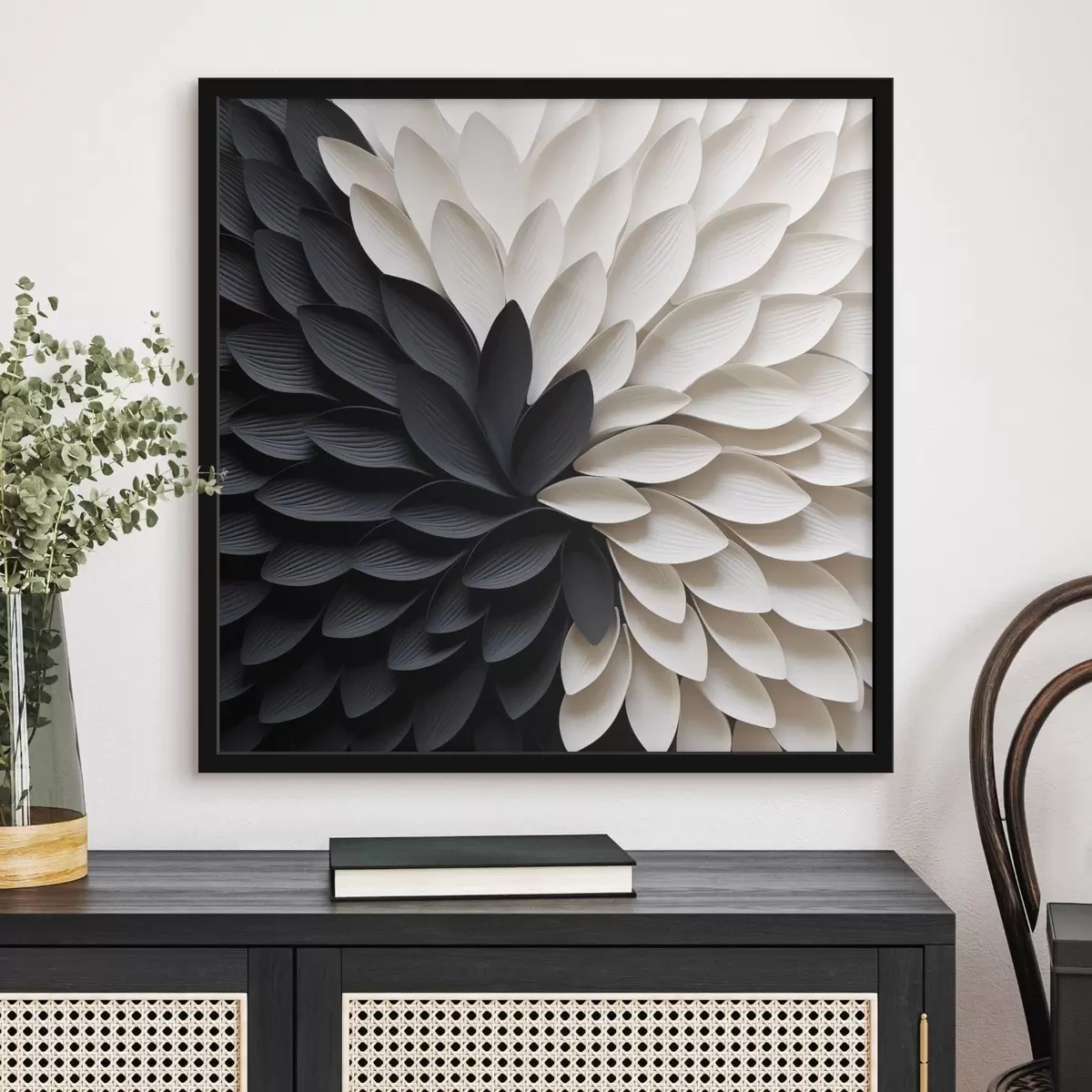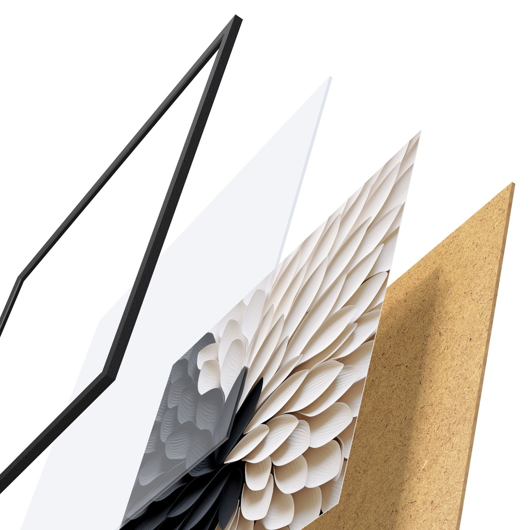 Plagát sa skladá z rámu, plexiskla, vytlačeného obrazu a podkladu z drevotriesky. Plagát možno okamžite zavesiť na stenu vďaka úchytom na zadnej strane.