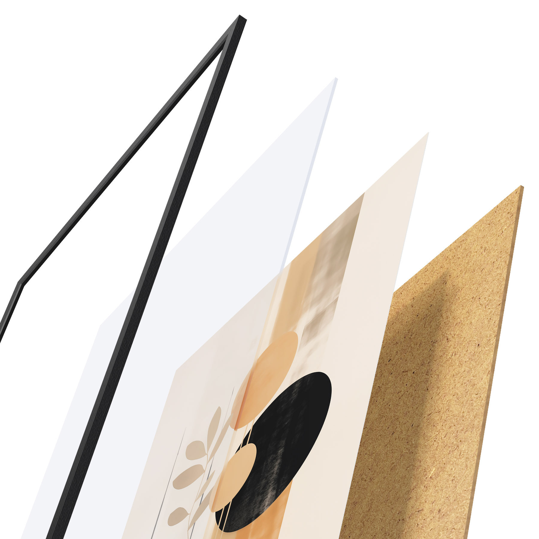 Plagát sa skladá z rámu, plexiskla, vytlačeného obrazu a podkladu z drevotriesky. Plagát možno okamžite zavesiť na stenu vďaka úchytom na zadnej strane.