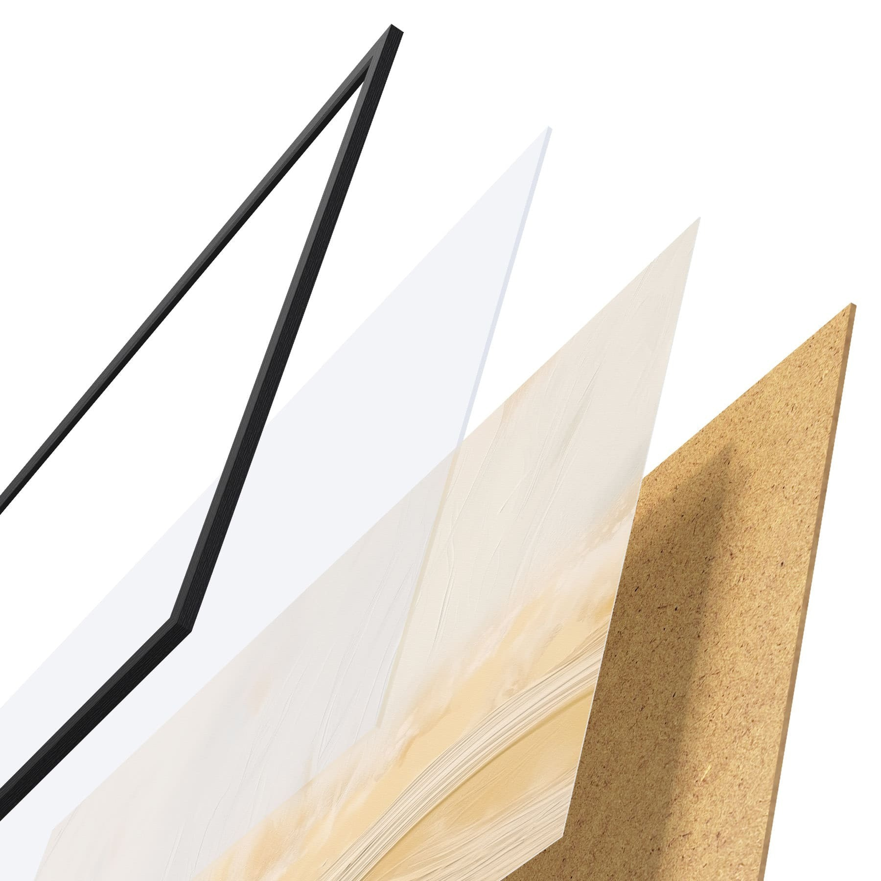 Plagát sa skladá z rámu, plexiskla, vytlačeného obrazu a podkladu z drevotriesky. Plagát možno okamžite zavesiť na stenu vďaka úchytom na zadnej strane.