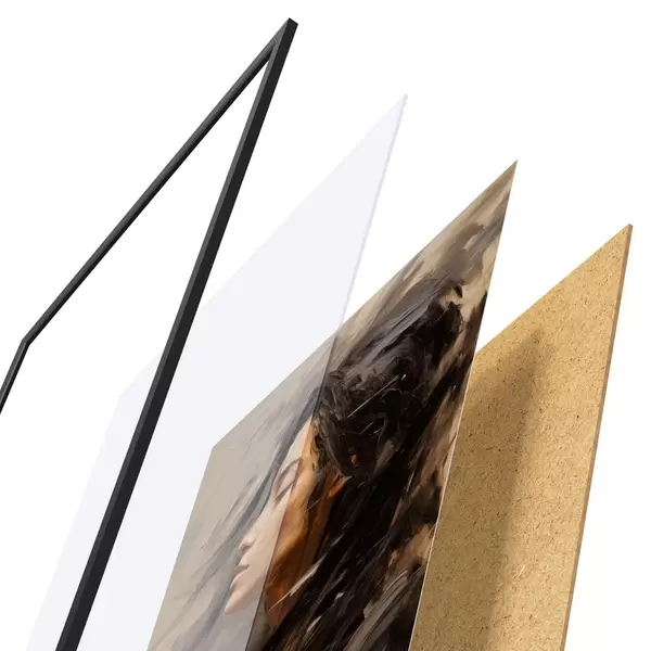 Plagát sa skladá z rámu, plexiskla, vytlačeného obrazu a podkladu z drevotriesky. Plagát možno okamžite zavesiť na stenu vďaka úchytom na zadnej strane.