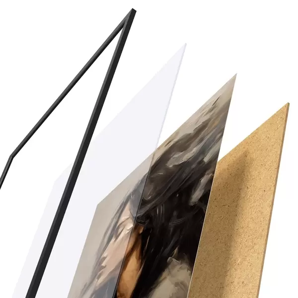 Plagát sa skladá z rámu, plexiskla, vytlačeného obrazu a podkladu z drevotriesky. Plagát možno okamžite zavesiť na stenu vďaka úchytom na zadnej strane.