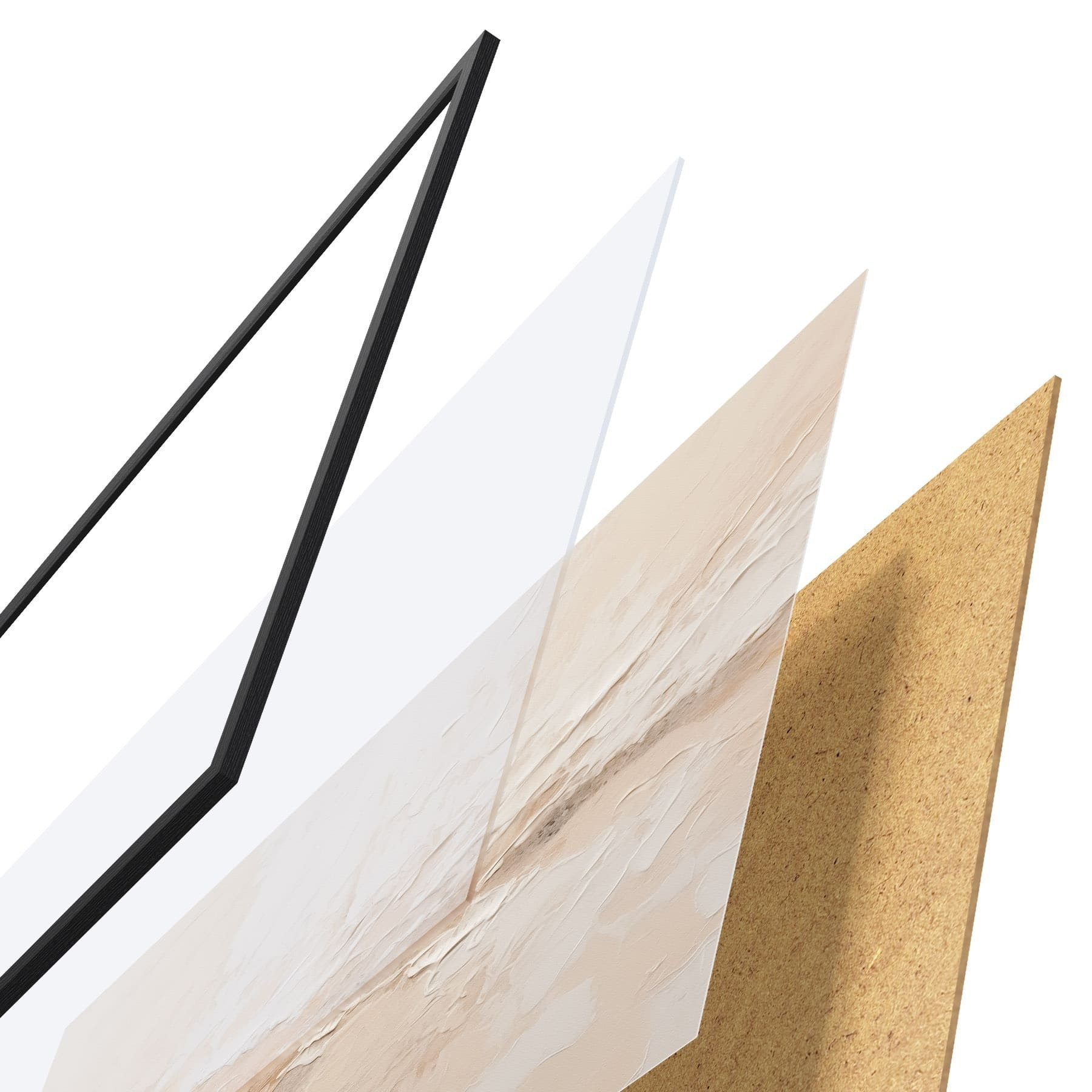 Plagát sa skladá z rámu, plexiskla, vytlačeného obrazu a podkladu z drevotriesky. Plagát možno okamžite zavesiť na stenu vďaka úchytom na zadnej strane.