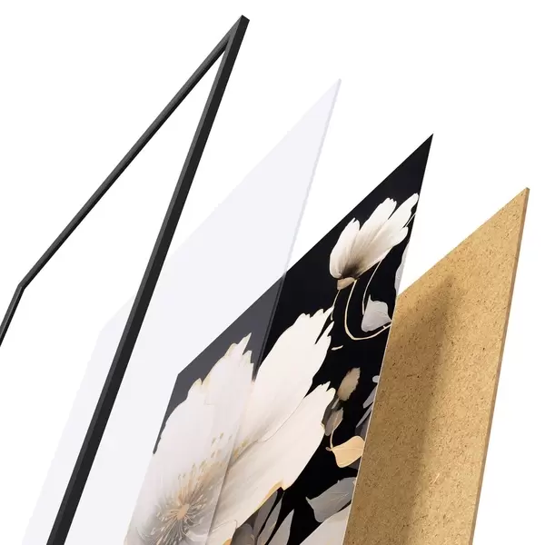 Plagát sa skladá z rámu, plexiskla, vytlačeného obrazu a podkladu z drevotriesky. Plagát možno okamžite zavesiť na stenu vďaka úchytom na zadnej strane.