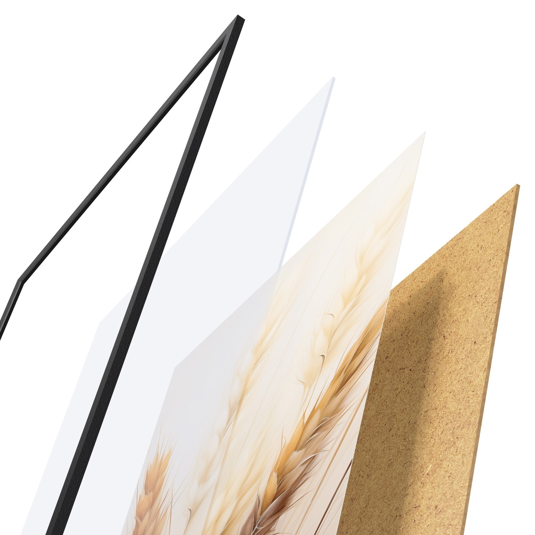 Plagát sa skladá z rámu, plexiskla, vytlačeného obrazu a podkladu z drevotriesky. Plagát možno okamžite zavesiť na stenu vďaka úchytom na zadnej strane.