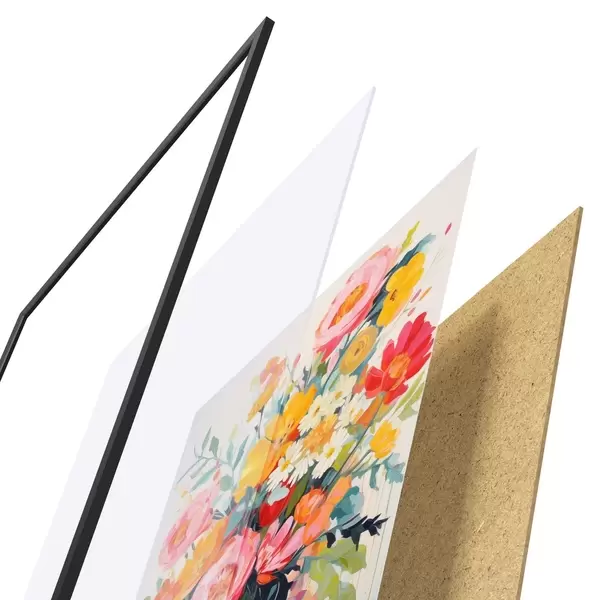 Plagát sa skladá z rámu, plexiskla, vytlačeného obrazu a podkladu z drevotriesky. Plagát možno okamžite zavesiť na stenu vďaka úchytom na zadnej strane.