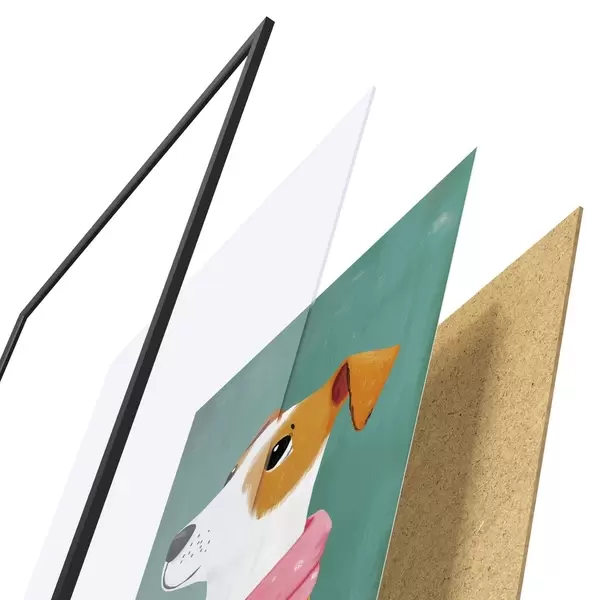 Plagát sa skladá z rámu, plexiskla, vytlačeného obrazu a podkladu z drevotriesky. Plagát možno okamžite zavesiť na stenu vďaka úchytom na zadnej strane.