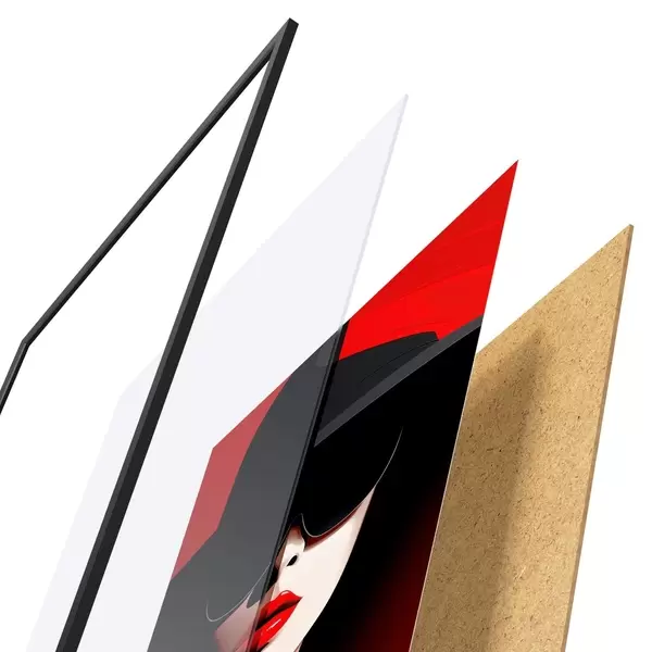 Plagát sa skladá z rámu, plexiskla, vytlačeného obrazu a podkladu z drevotriesky. Plagát možno okamžite zavesiť na stenu vďaka úchytom na zadnej strane.