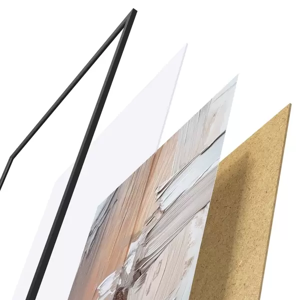 Plagát sa skladá z rámu, plexiskla, vytlačeného obrazu a podkladu z drevotriesky. Plagát možno okamžite zavesiť na stenu vďaka úchytom na zadnej strane.