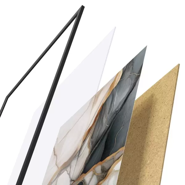 Plagát sa skladá z rámu, plexiskla, vytlačeného obrazu a podkladu z drevotriesky. Plagát možno okamžite zavesiť na stenu vďaka úchytom na zadnej strane.