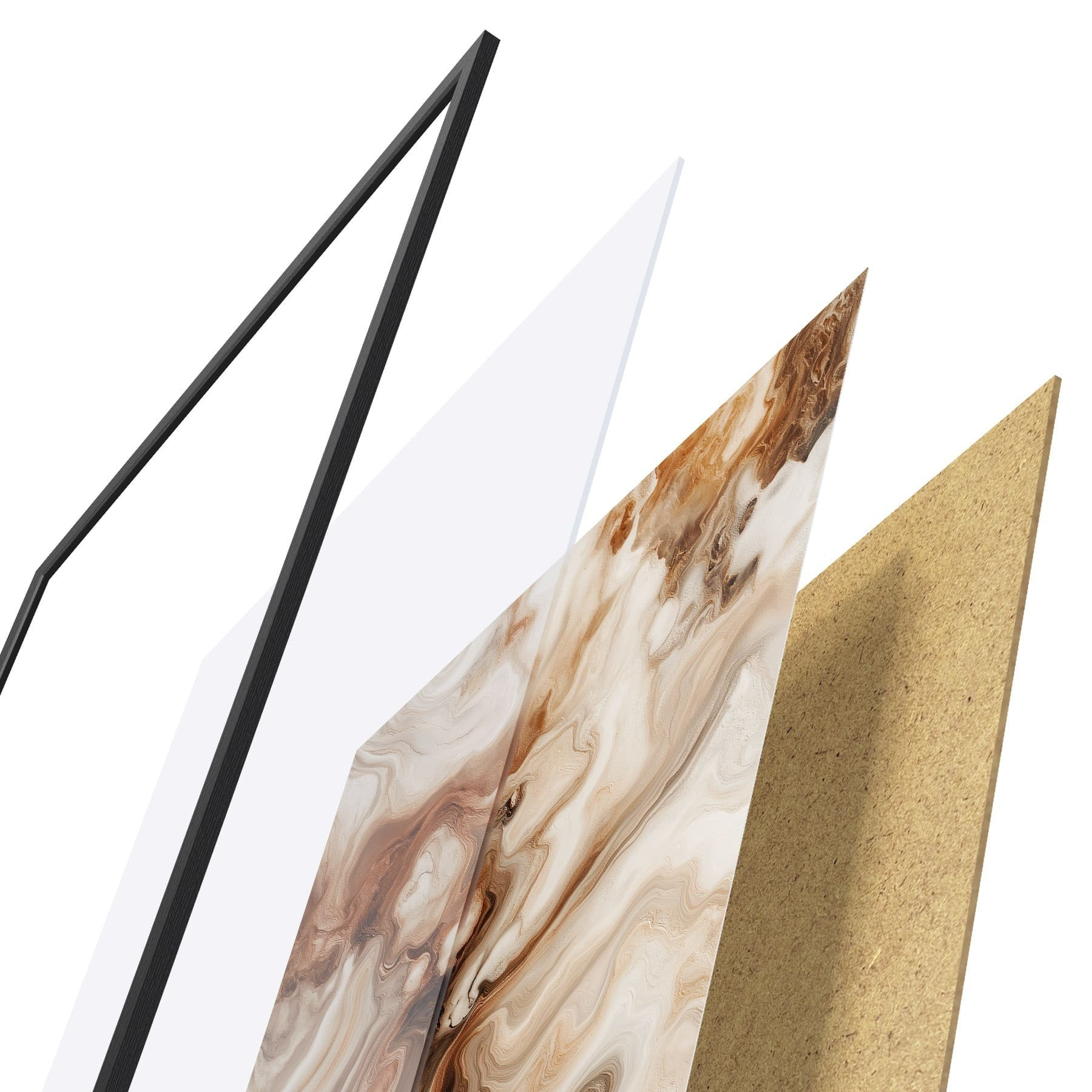 Plagát sa skladá z rámu, plexiskla, vytlačeného obrazu a podkladu z drevotriesky. Plagát možno okamžite zavesiť na stenu vďaka úchytom na zadnej strane.
