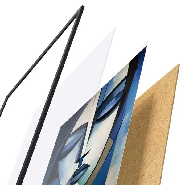 Plagát sa skladá z rámu, plexiskla, vytlačeného obrazu a podkladu z drevotriesky. Plagát možno okamžite zavesiť na stenu vďaka úchytom na zadnej strane.