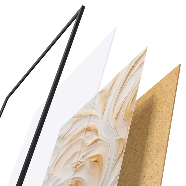 Plagát sa skladá z rámu, plexiskla, vytlačeného obrazu a podkladu z drevotriesky. Plagát možno okamžite zavesiť na stenu vďaka úchytom na zadnej strane.