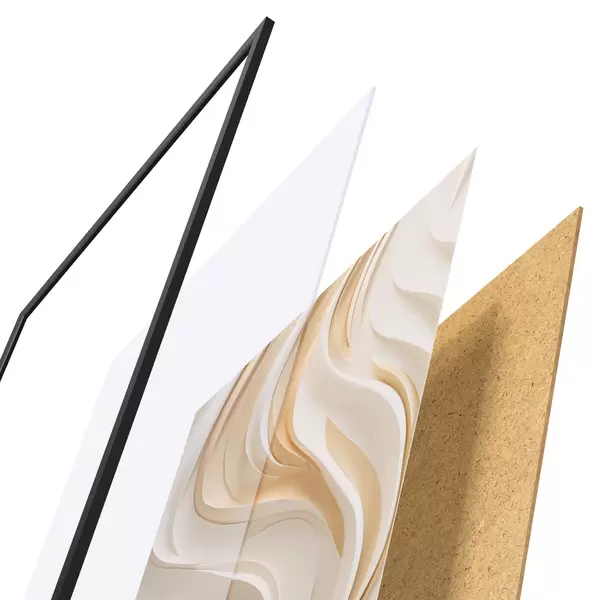 Plagát sa skladá z rámu, plexiskla, vytlačeného obrazu a podkladu z drevotriesky. Plagát možno okamžite zavesiť na stenu vďaka úchytom na zadnej strane.
