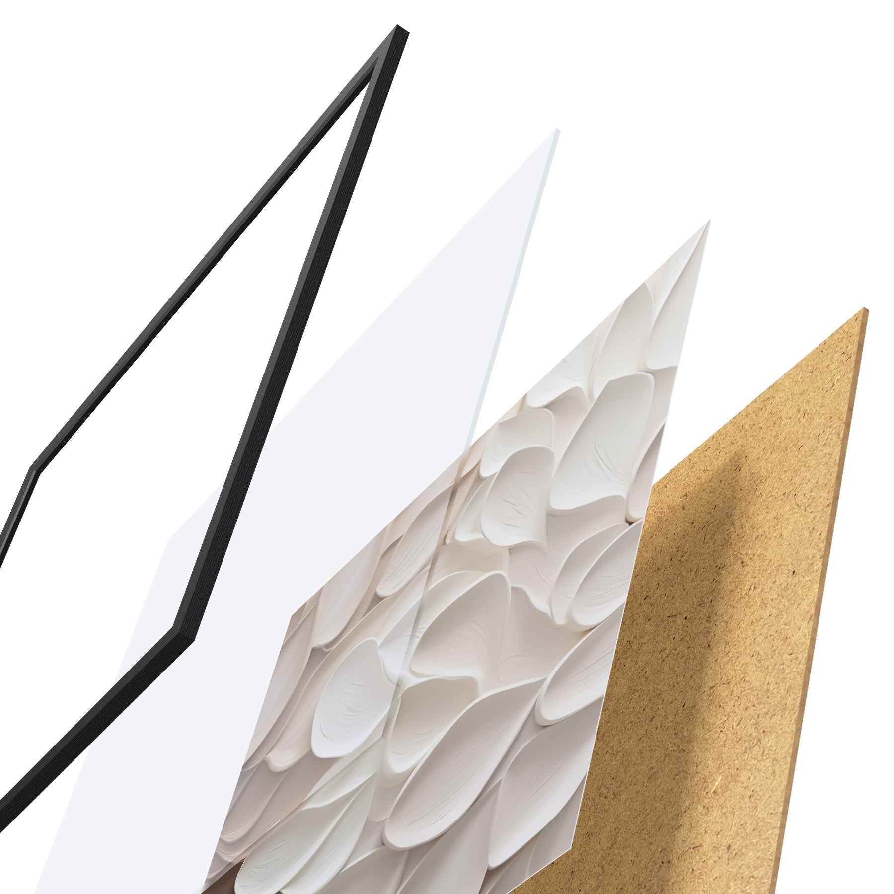 Plagát sa skladá z rámu, plexiskla, vytlačeného obrazu a podkladu z drevotriesky. Plagát možno okamžite zavesiť na stenu vďaka úchytom na zadnej strane.