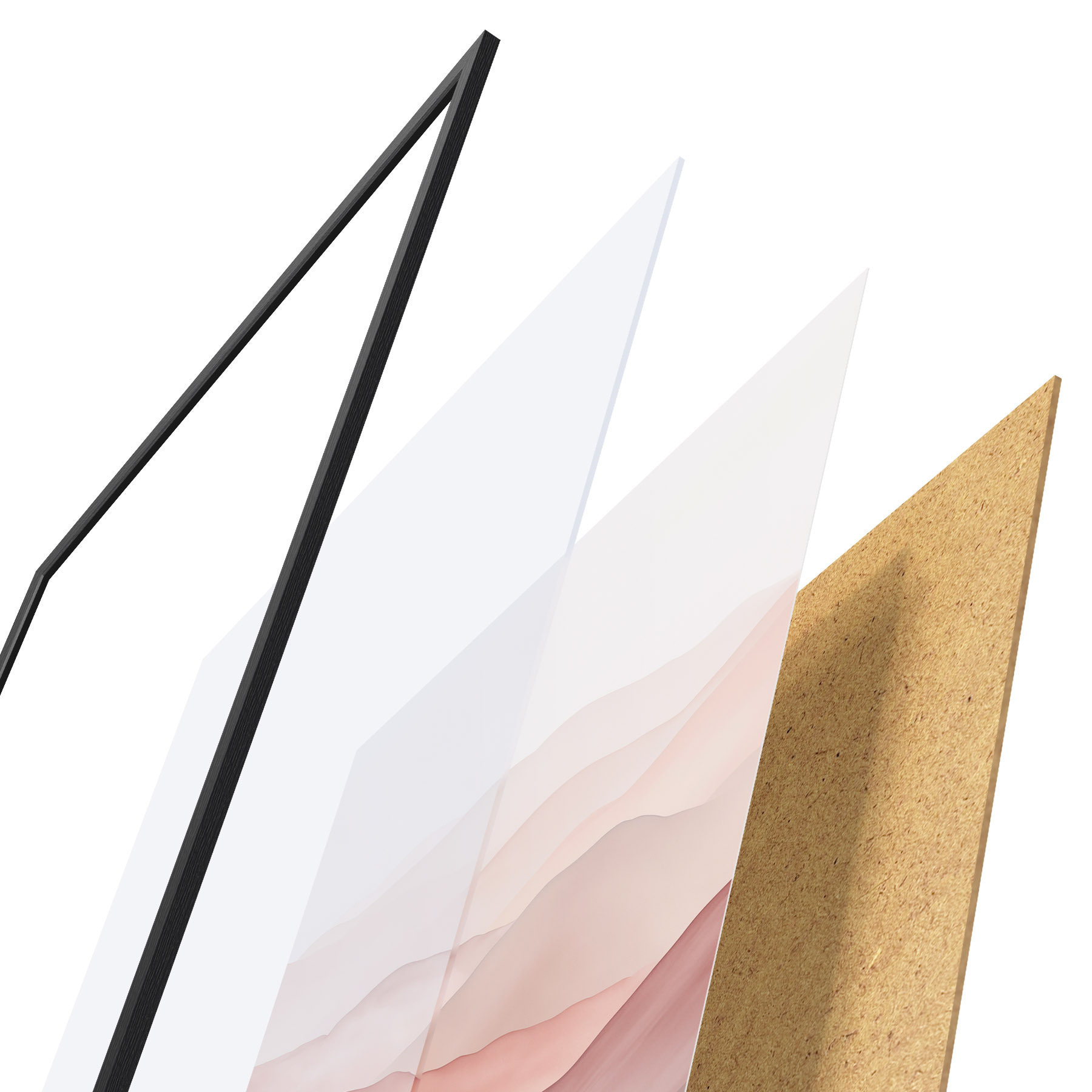 Plagát sa skladá z rámu, plexiskla, vytlačeného obrazu a podkladu z drevotriesky. Plagát možno okamžite zavesiť na stenu vďaka úchytom na zadnej strane.
