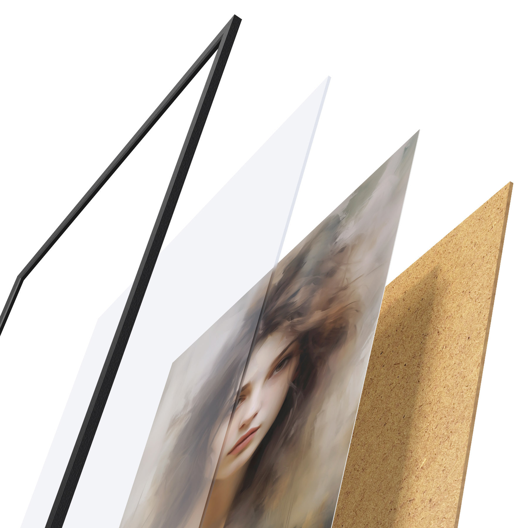 Plagát sa skladá z rámu, plexiskla, vytlačeného obrazu a podkladu z drevotriesky. Plagát možno okamžite zavesiť na stenu vďaka úchytom na zadnej strane.