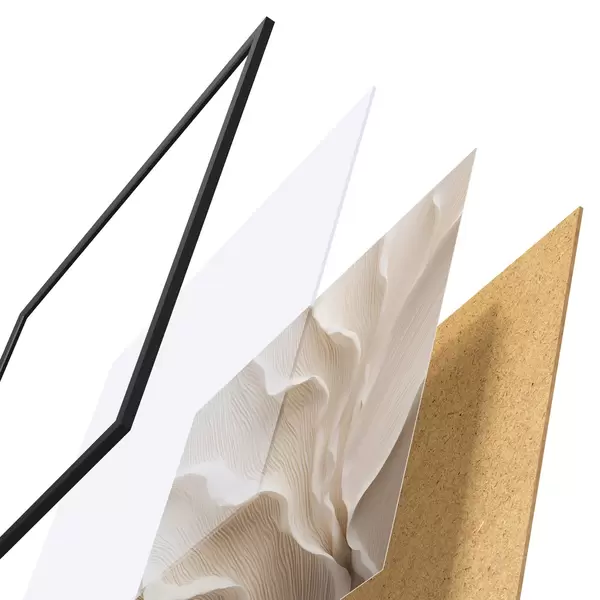 Plagát sa skladá z rámu, plexiskla, vytlačeného obrazu a podkladu z drevotriesky. Plagát možno okamžite zavesiť na stenu vďaka úchytom na zadnej strane.