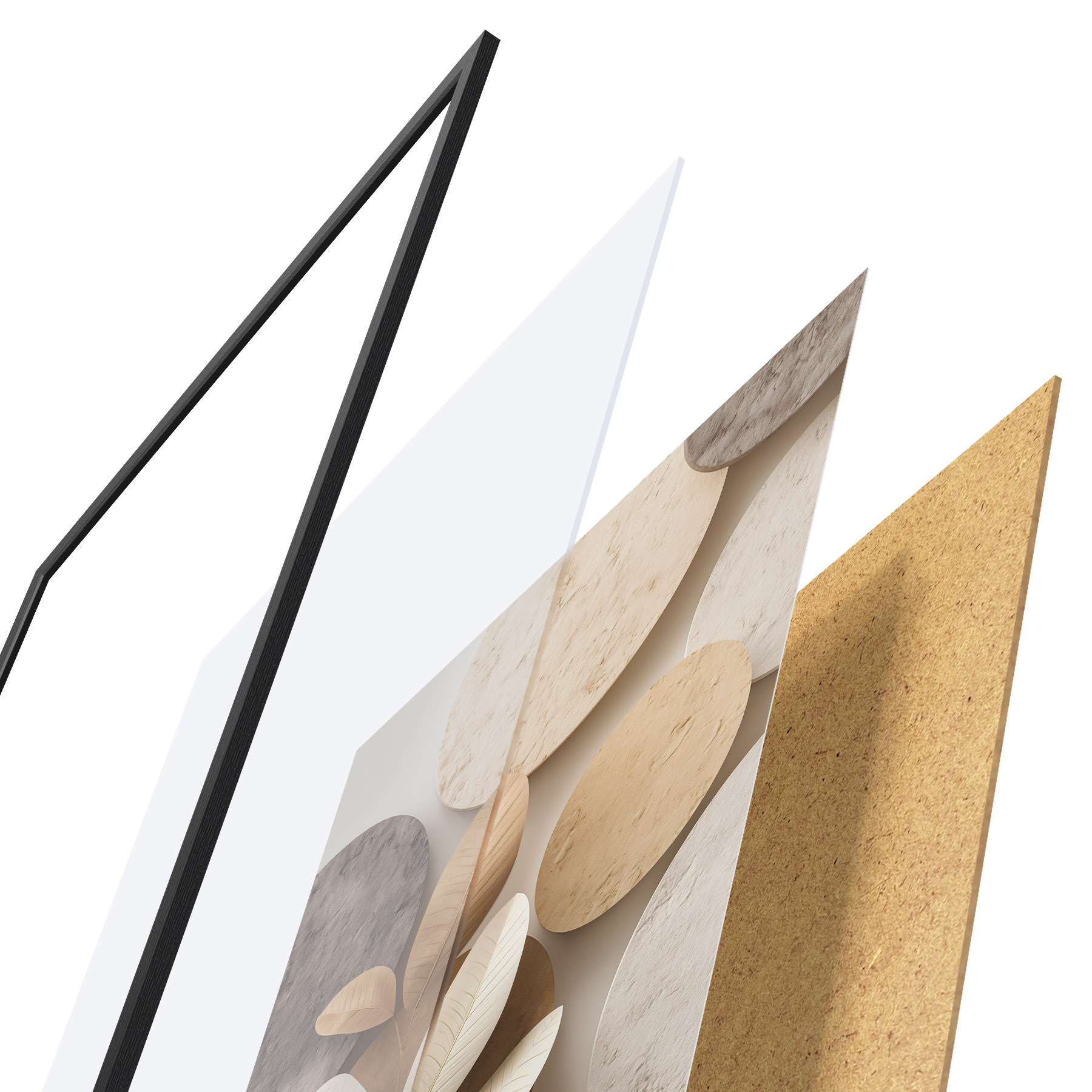 Plagát sa skladá z rámu, plexiskla, vytlačeného obrazu a podkladu z drevotriesky. Plagát možno okamžite zavesiť na stenu vďaka úchytom na zadnej strane.