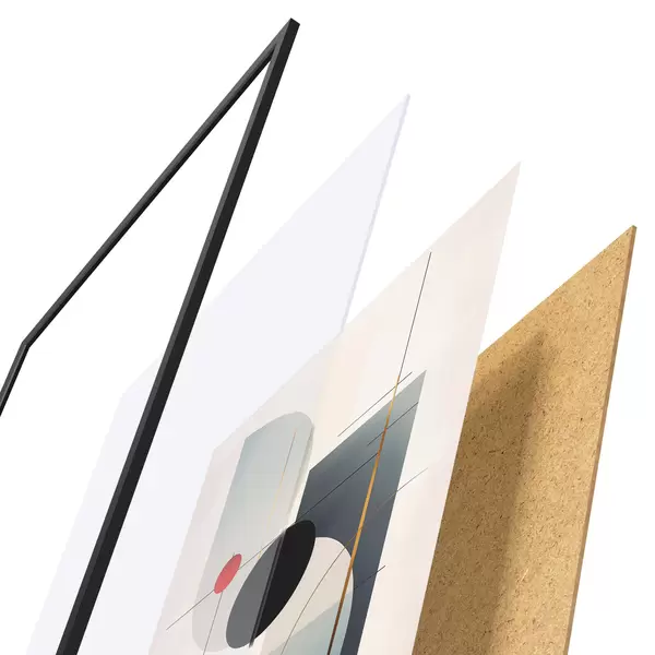 Plagát sa skladá z rámu, plexiskla, vytlačeného obrazu a podkladu z drevotriesky. Plagát možno okamžite zavesiť na stenu vďaka úchytom na zadnej strane.