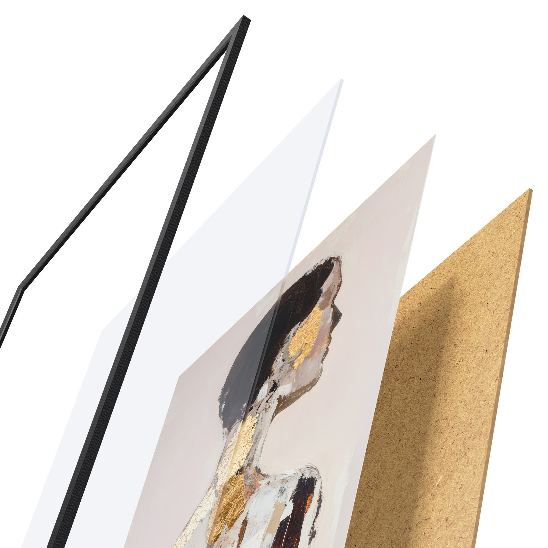 Plagát sa skladá z rámu, plexiskla, vytlačeného obrazu a podkladu z drevotriesky. Plagát možno okamžite zavesiť na stenu vďaka úchytom na zadnej strane.