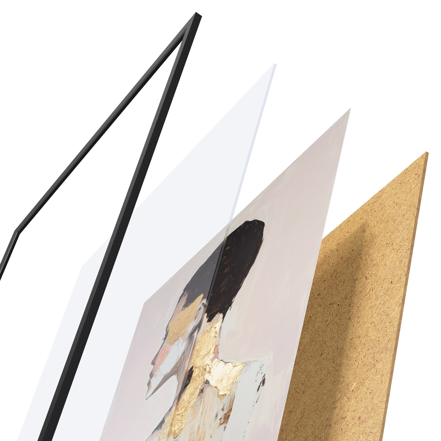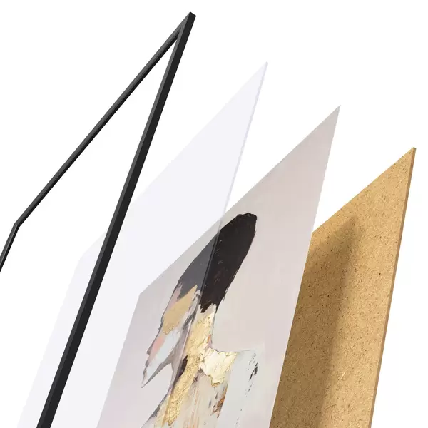 Plagát sa skladá z rámu, plexiskla, vytlačeného obrazu a podkladu z drevotriesky. Plagát možno okamžite zavesiť na stenu vďaka úchytom na zadnej strane.