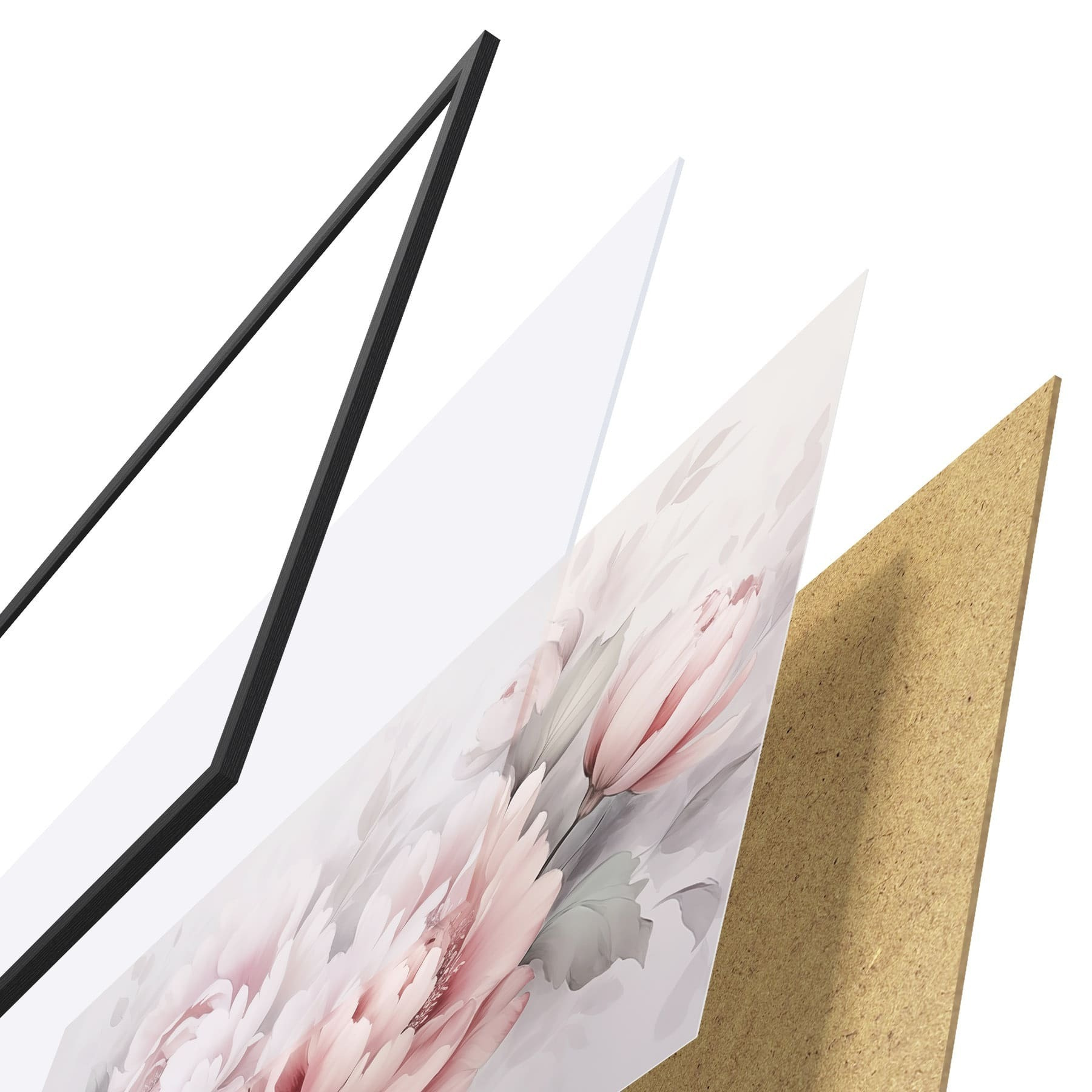 Plagát sa skladá z rámu, plexiskla, vytlačeného obrazu a podkladu z drevotriesky. Plagát možno okamžite zavesiť na stenu vďaka úchytom na zadnej strane.
