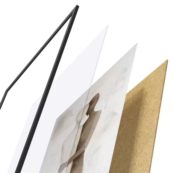 Plagát sa skladá z rámu, plexiskla, vytlačeného obrazu a podkladu z drevotriesky. Plagát možno okamžite zavesiť na stenu vďaka úchytom na zadnej strane.