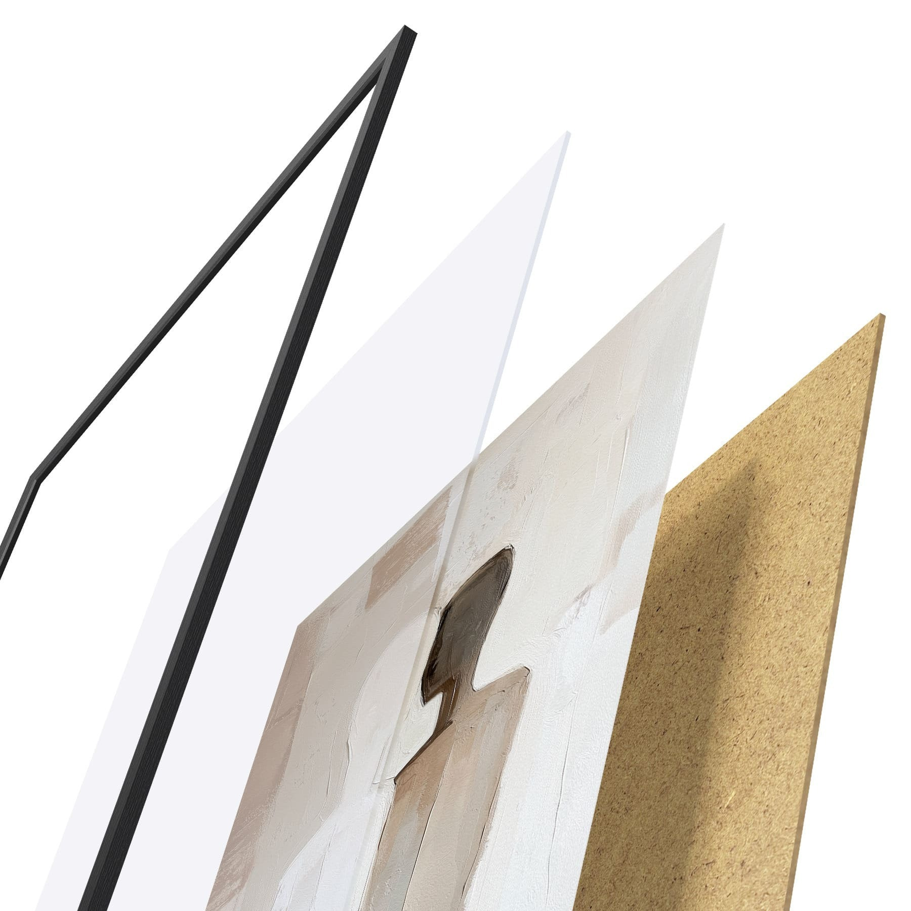 Plagát sa skladá z rámu, plexiskla, vytlačeného obrazu a podkladu z drevotriesky. Plagát možno okamžite zavesiť na stenu vďaka úchytom na zadnej strane.