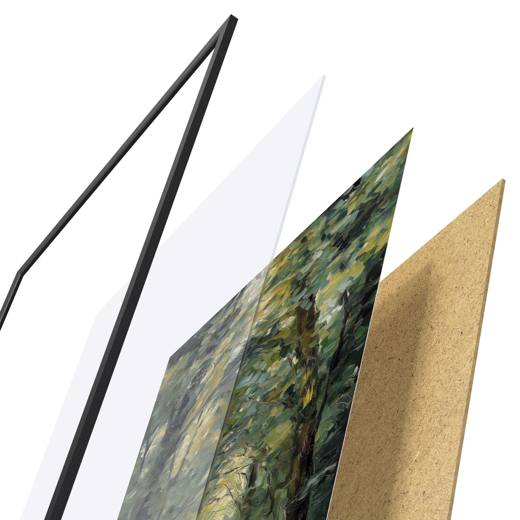Plagát sa skladá z rámu, plexiskla, vytlačeného obrazu a podkladu z drevotriesky. Plagát možno okamžite zavesiť na stenu vďaka úchytom na zadnej strane.