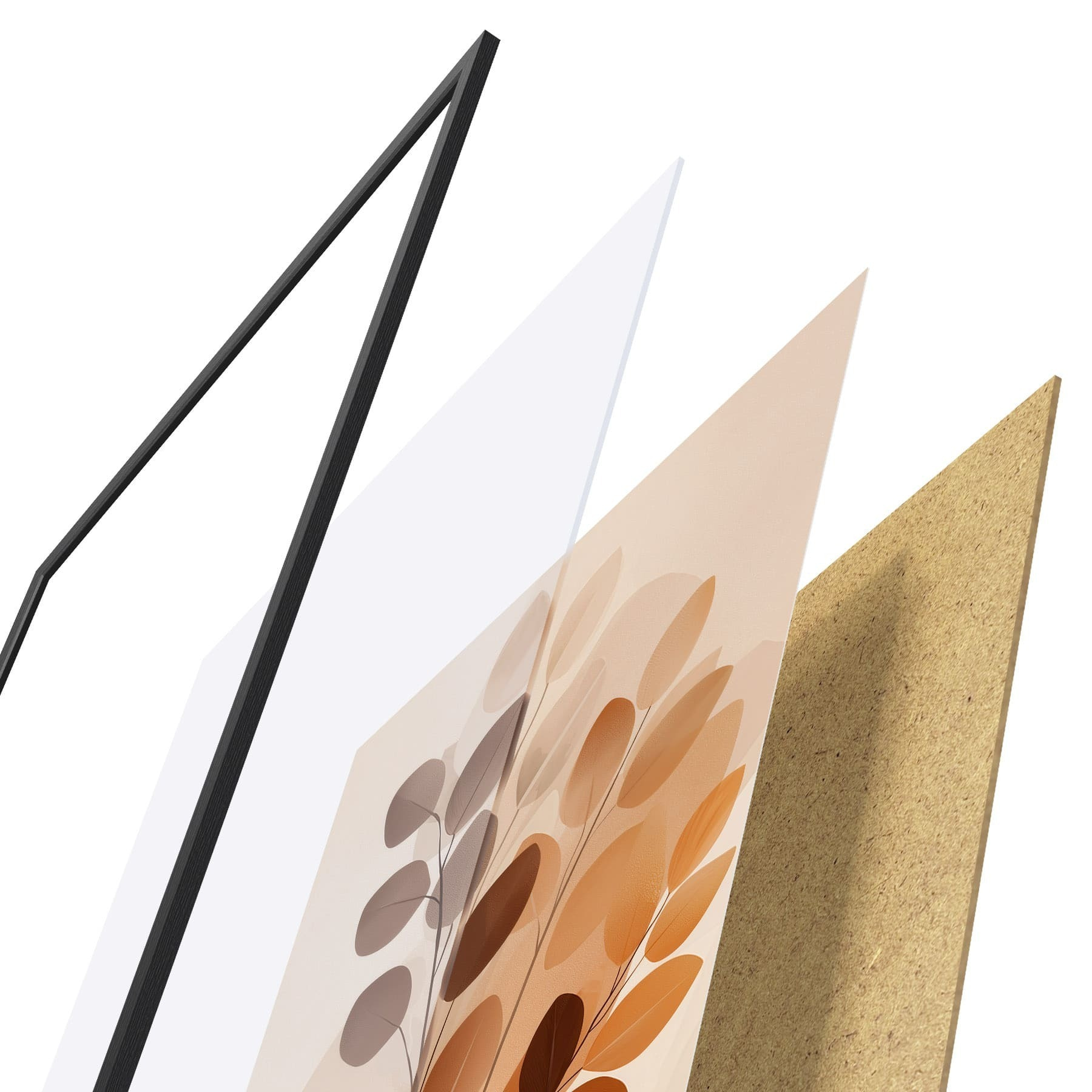 Plagát sa skladá z rámu, plexiskla, vytlačeného obrazu a podkladu z drevotriesky. Plagát možno okamžite zavesiť na stenu vďaka úchytom na zadnej strane.