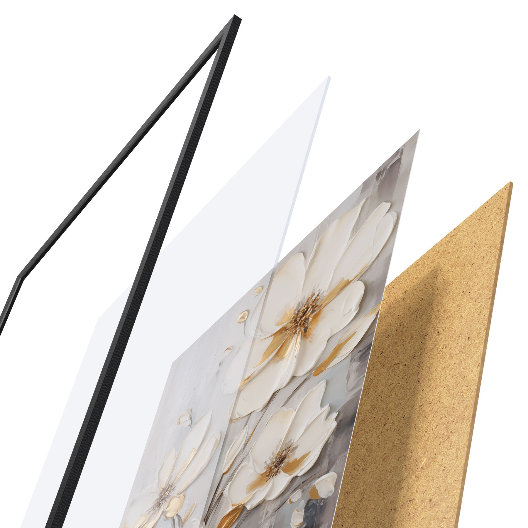 Plagát sa skladá z rámu, plexiskla, vytlačeného obrazu a podkladu z drevotriesky. Plagát možno okamžite zavesiť na stenu vďaka úchytom na zadnej strane.
