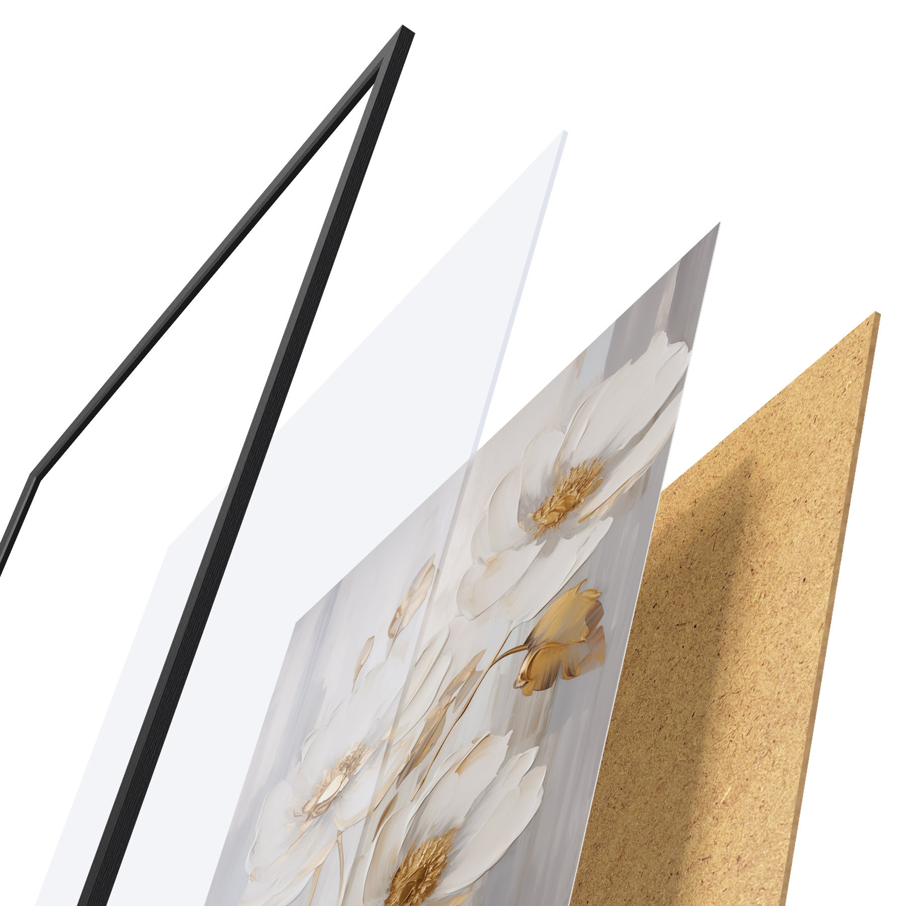Plagát sa skladá z rámu, plexiskla, vytlačeného obrazu a podkladu z drevotriesky. Plagát možno okamžite zavesiť na stenu vďaka úchytom na zadnej strane.