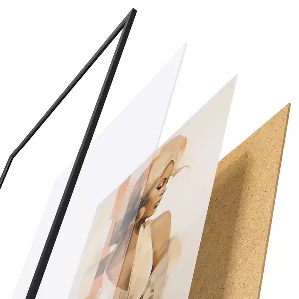 Plagát sa skladá z rámu, plexiskla, vytlačeného obrazu a podkladu z drevotriesky. Plagát možno okamžite zavesiť na stenu vďaka úchytom na zadnej strane.