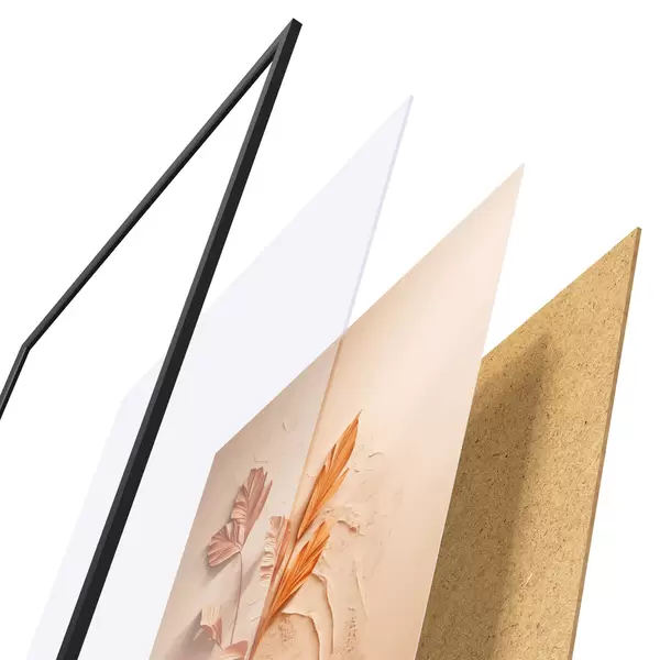 Plagát sa skladá z rámu, plexiskla, vytlačeného obrazu a podkladu z drevotriesky. Plagát možno okamžite zavesiť na stenu vďaka úchytom na zadnej strane.