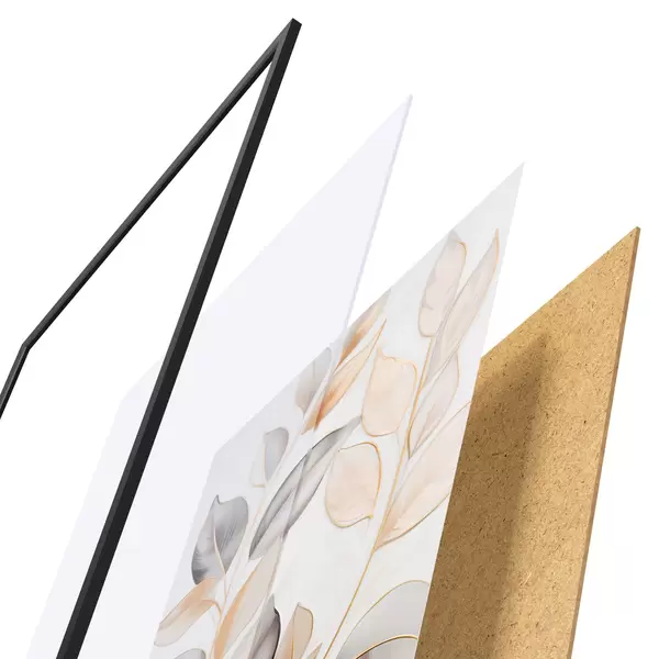 Plagát sa skladá z rámu, plexiskla, vytlačeného obrazu a podkladu z drevotriesky. Plagát možno okamžite zavesiť na stenu vďaka úchytom na zadnej strane.