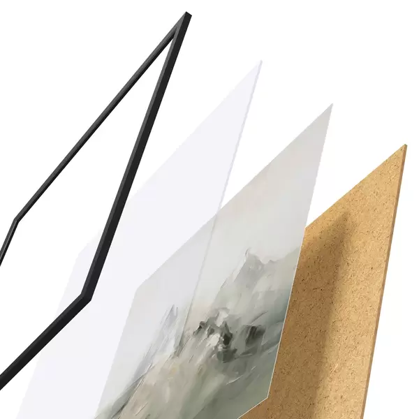 Plagát sa skladá z rámu, plexiskla, vytlačeného obrazu a podkladu z drevotriesky. Plagát možno okamžite zavesiť na stenu vďaka úchytom na zadnej strane.