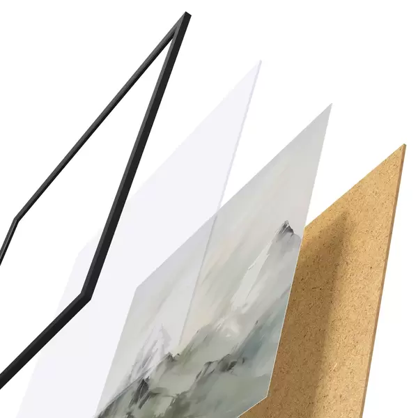 Plagát sa skladá z rámu, plexiskla, vytlačeného obrazu a podkladu z drevotriesky. Plagát možno okamžite zavesiť na stenu vďaka úchytom na zadnej strane.