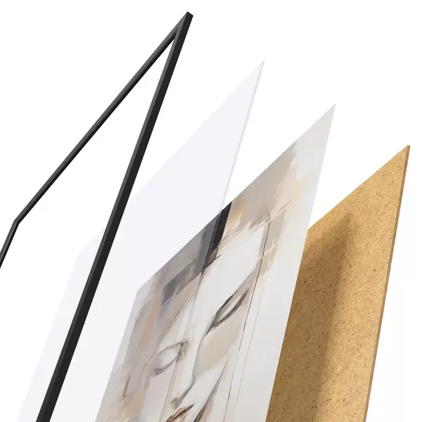 Plagát sa skladá z rámu, plexiskla, vytlačeného obrazu a podkladu z drevotriesky. Plagát možno okamžite zavesiť na stenu vďaka úchytom na zadnej strane.