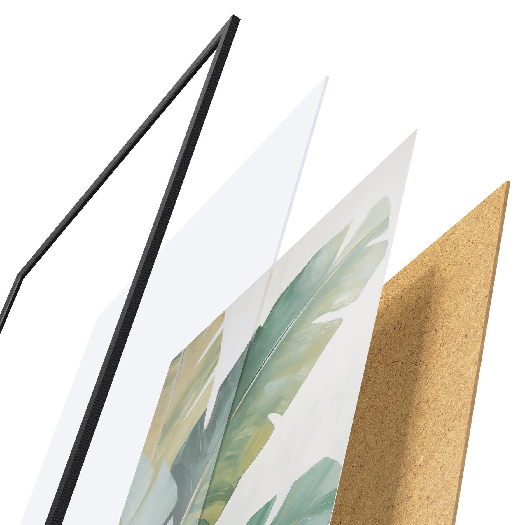 Plagát sa skladá z rámu, plexiskla, vytlačeného obrazu a podkladu z drevotriesky. Plagát možno okamžite zavesiť na stenu vďaka úchytom na zadnej strane.