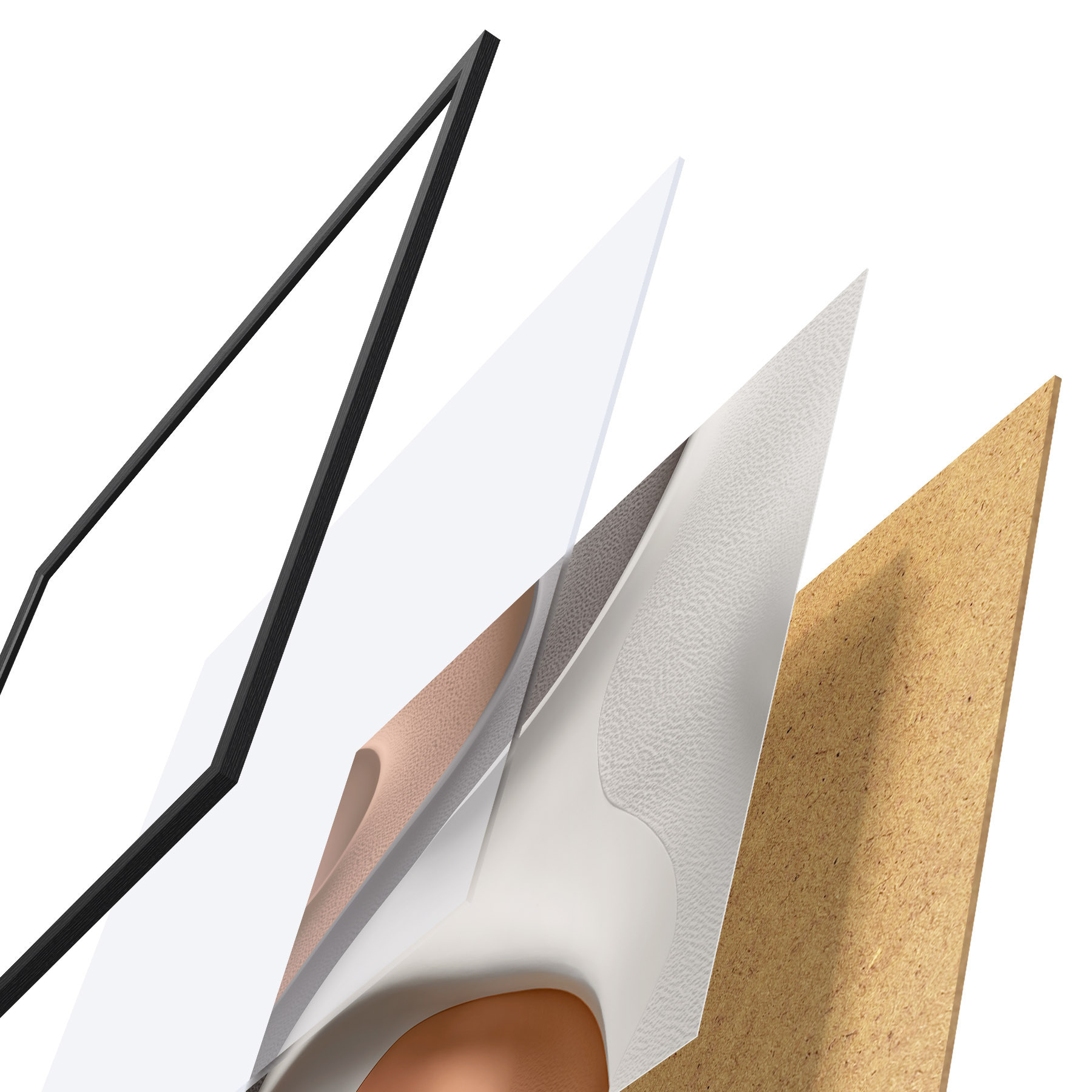 Plagát sa skladá z rámu, plexiskla, vytlačeného obrazu a podkladu z drevotriesky. Plagát možno okamžite zavesiť na stenu vďaka úchytom na zadnej strane.