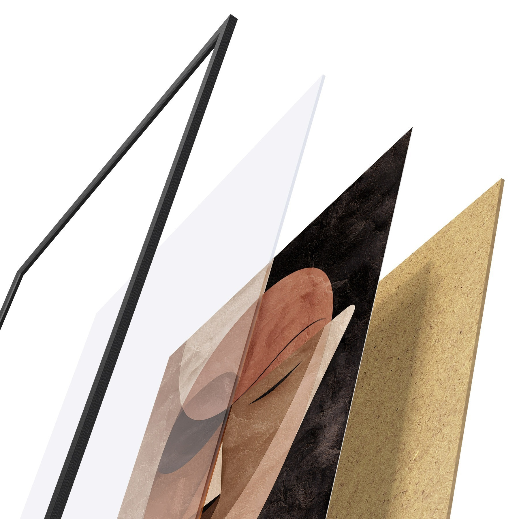 Plagát sa skladá z rámu, plexiskla, vytlačeného obrazu a podkladu z drevotriesky. Plagát možno okamžite zavesiť na stenu vďaka úchytom na zadnej strane.