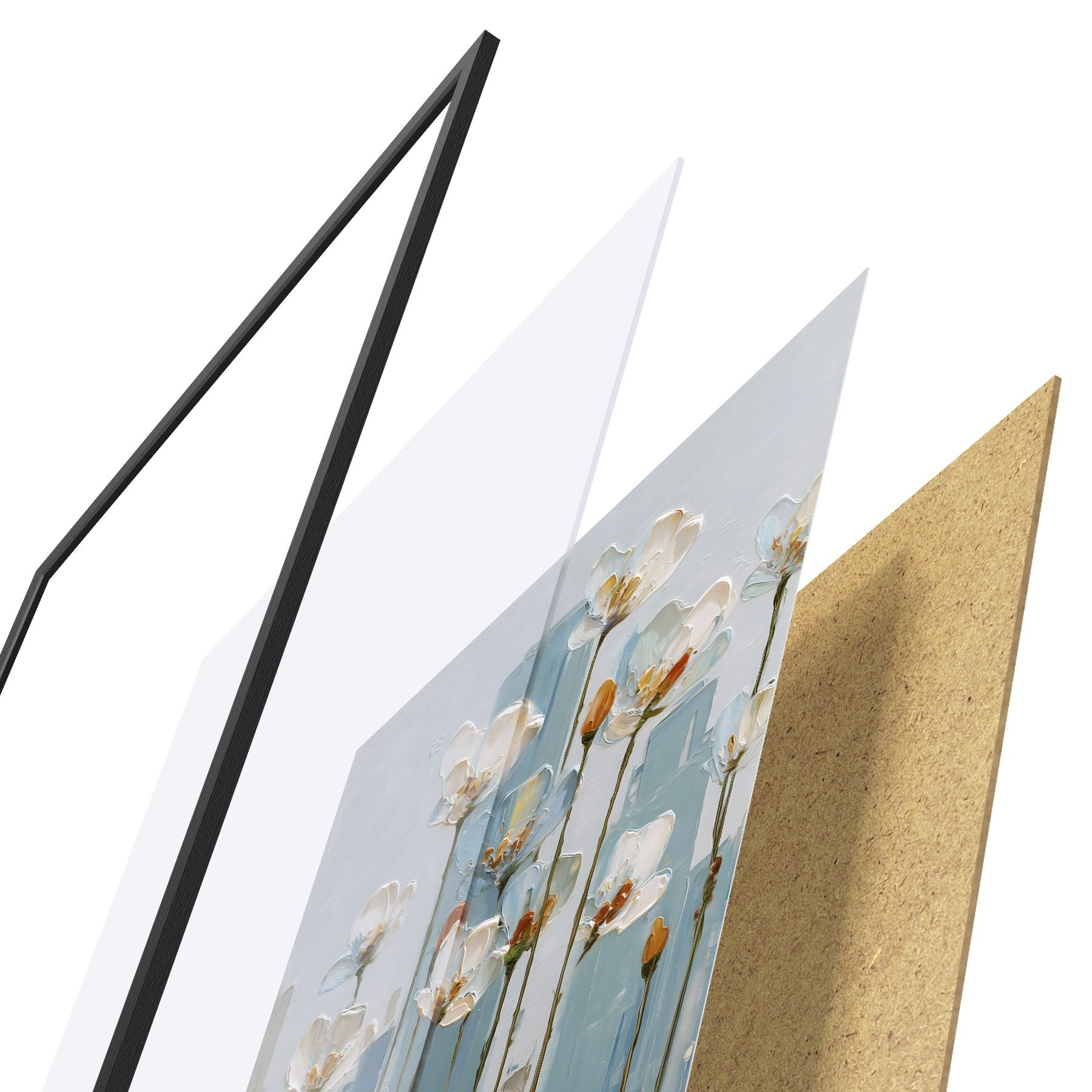 Plagát sa skladá z rámu, plexiskla, vytlačeného obrazu a podkladu z drevotriesky. Plagát možno okamžite zavesiť na stenu vďaka úchytom na zadnej strane.