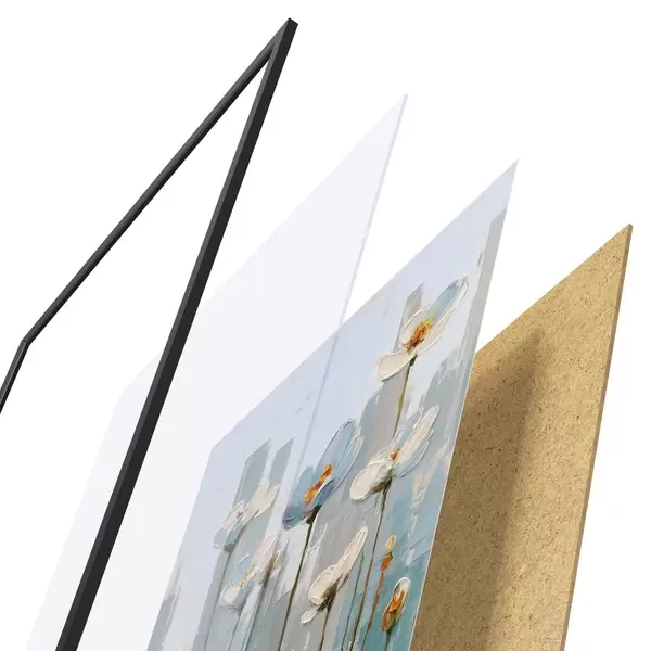 Plagát sa skladá z rámu, plexiskla, vytlačeného obrazu a podkladu z drevotriesky. Plagát možno okamžite zavesiť na stenu vďaka úchytom na zadnej strane.
