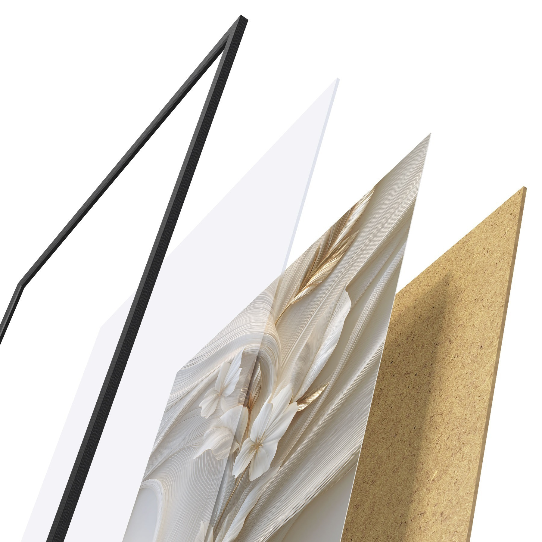 Plagát sa skladá z rámu, plexiskla, vytlačeného obrazu a podkladu z drevotriesky. Plagát možno okamžite zavesiť na stenu vďaka úchytom na zadnej strane.