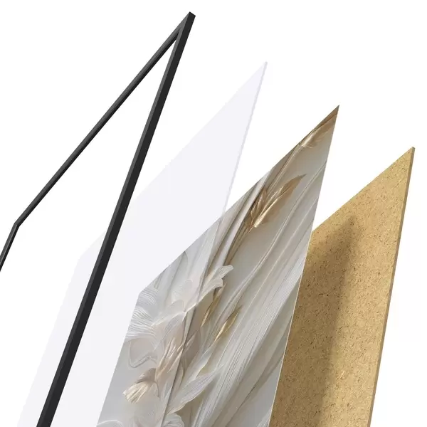 Plagát sa skladá z rámu, plexiskla, vytlačeného obrazu a podkladu z drevotriesky. Plagát možno okamžite zavesiť na stenu vďaka úchytom na zadnej strane.