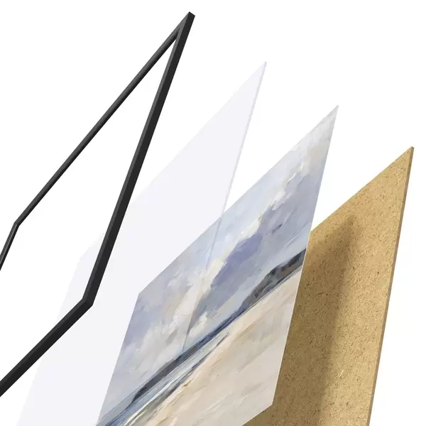 Plagát sa skladá z rámu, plexiskla, vytlačeného obrazu a podkladu z drevotriesky. Plagát možno okamžite zavesiť na stenu vďaka úchytom na zadnej strane.